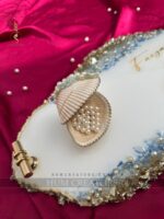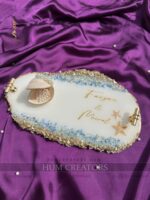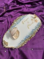 At the heart of this piece lies a beautifully crafted seashell ring holder, making it ideal for holding rings during special moments like engagements, nikah ceremonies, or wedding events. What makes this platter truly unique is the option to customize it with names, turning it into a meaningful keepsake you can cherish forever.